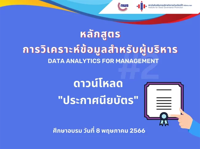 โครงการศึกษาอบรมหลักสูตร หลักสูตรการวิเคราะห์ข้อมูลสำหรับผู้บริหาร (Data Analytic for Management)