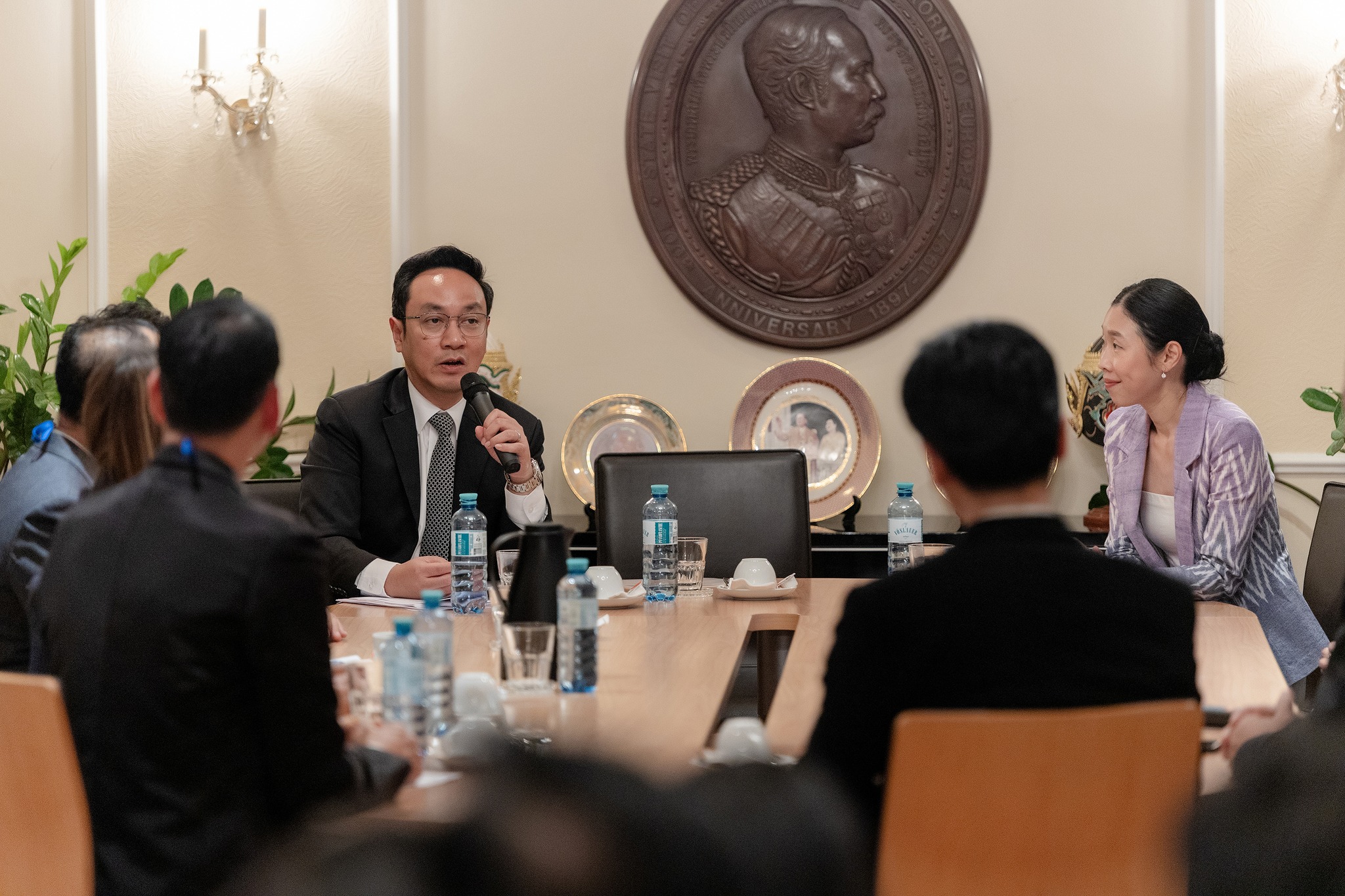 Following the briefing, Ambassador Hongtong hosted a dinner at the Royal Thai Residence in honor of the delegation. This gathering provided a good chance for informal dialogue and the strengthening of collaborative networks among the Thai agencies.