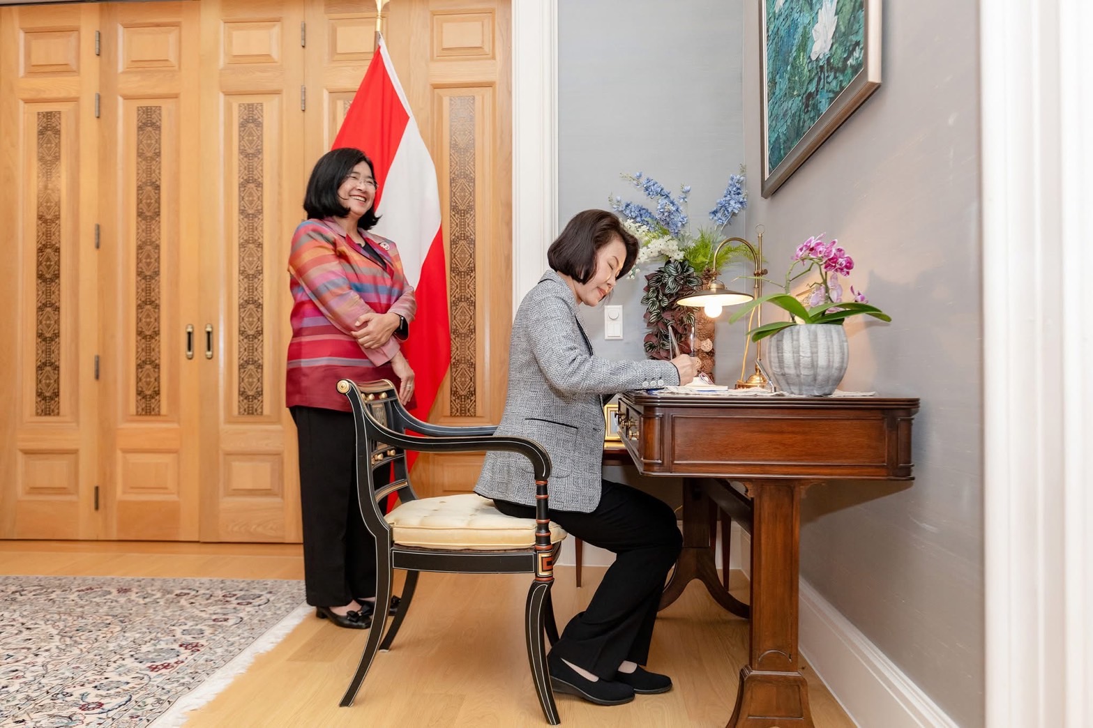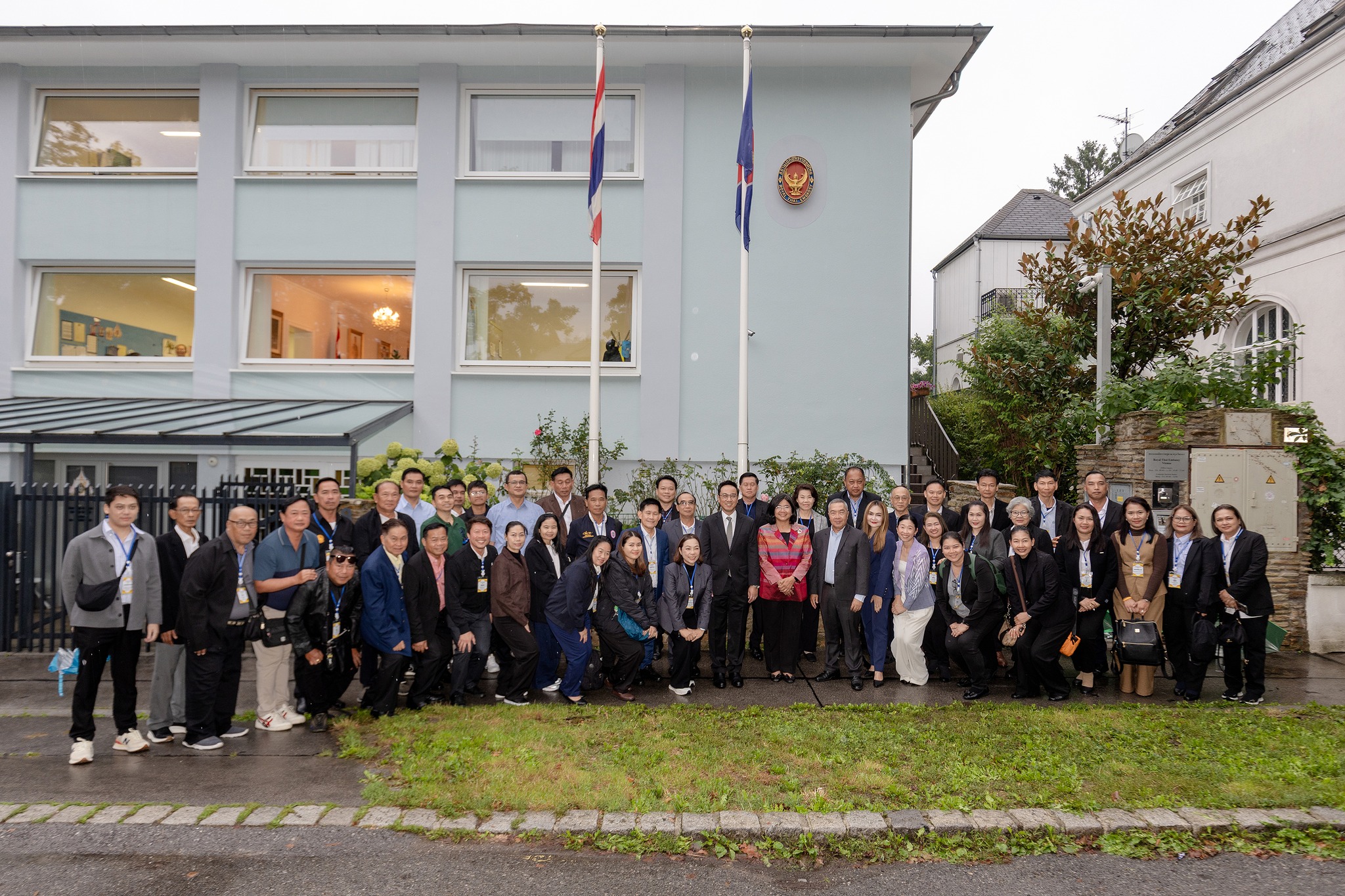 เมื่อวันที่ 10 กันยายน 2568 นางสาวภัทรัตน์ หงษ์ทอง เอกอัครราชทูต ณ กรุงเวียนนา พร้อมด้วยนายชีวินท์ ณ ถลาง อัครราชทูต ณ กรุงเวียนนา และนางสาวธัญธิดา หวังธำรง เฮลบาร์ธ ที่ปรึกษา ได้ให้การต้อนรับคณะผู้เข้าร่วมหลักสูตร “นวัตกรรมเพื่อการพัฒนาองค์การและสังคมที่ยั่งยืน รุ่นที่ 5” ที่สถานเอกอัครราชทูต ณ กรุงเวียนนา โดยมีหม่อมหลวงพัชรภากร เทวกุล ผู้อำนวยการสถาบันส่งเสริมการบริหารกิจการบ้านเมืองที่ดี สำนักงานคณะกรรมการพัฒนาระบบราชการ (ก.พ.ร.) นำคณะผู้แทนจากจังหวัดต่าง ๆ เข้าร่วม
